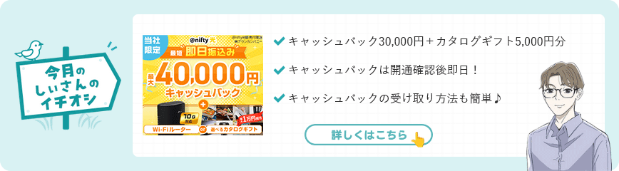 開通即日に30,000円がもらえる「@nifty光」 ※この記事を見た人から一番人気