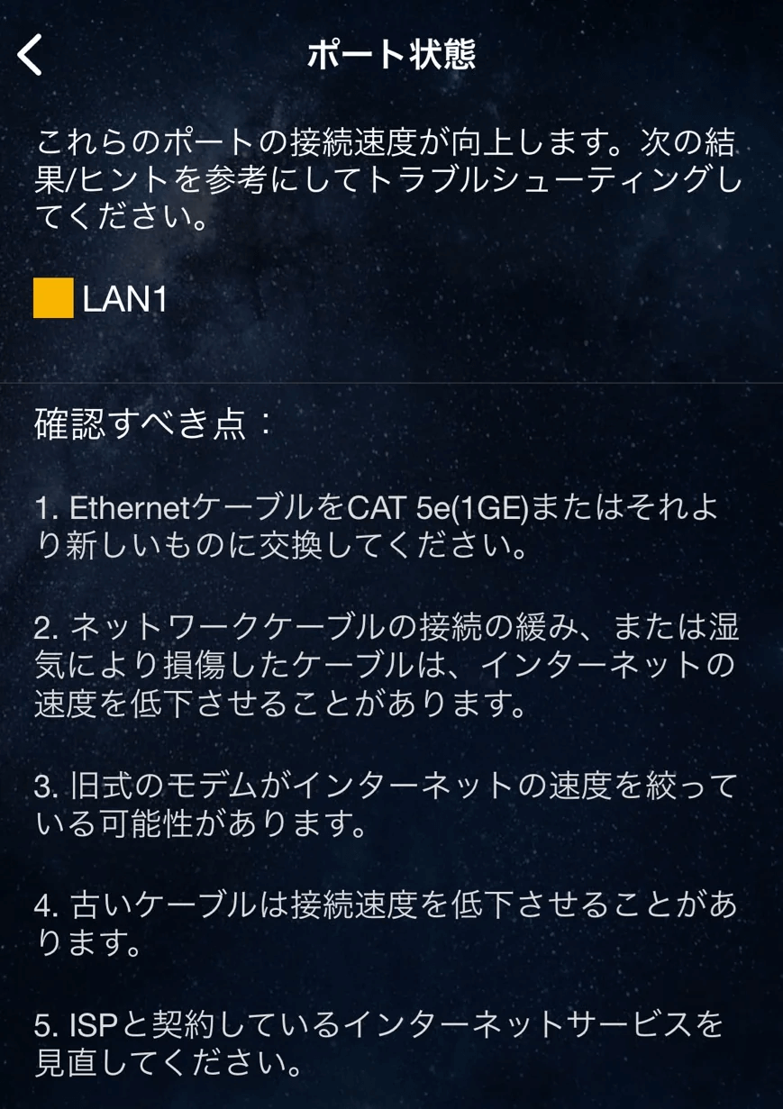 接続機器やLANケーブル側に問題がある可能性が高いです。