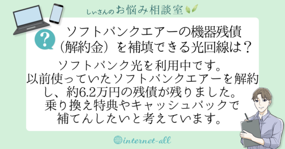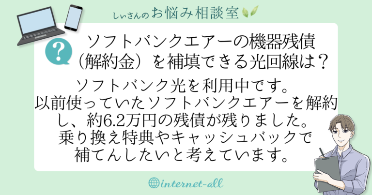 ソフトバンクエアーの残債を補填できるネット回線に乗り換えたいということですね。