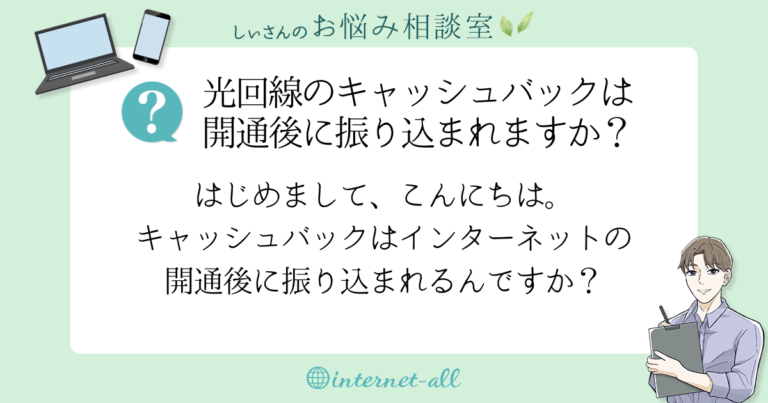 キャッシュバックはインターネットの開通後に振り込まれるんですか?